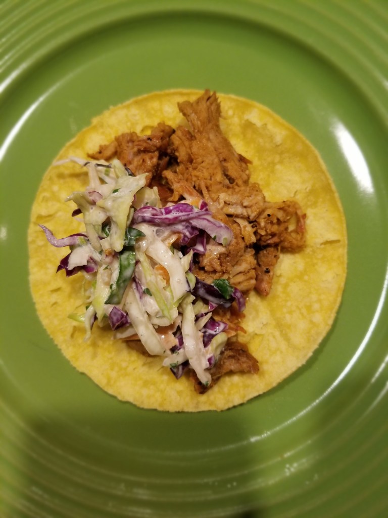 Ingredients: Grilled pork loin marinated in oilive oil, salt, pepper, and a little white wine vinegar. Cook well done and the last few minutes spread some BBQ sauce on. Place in a bowl, shred the pork up and then add more BBQ sauce.