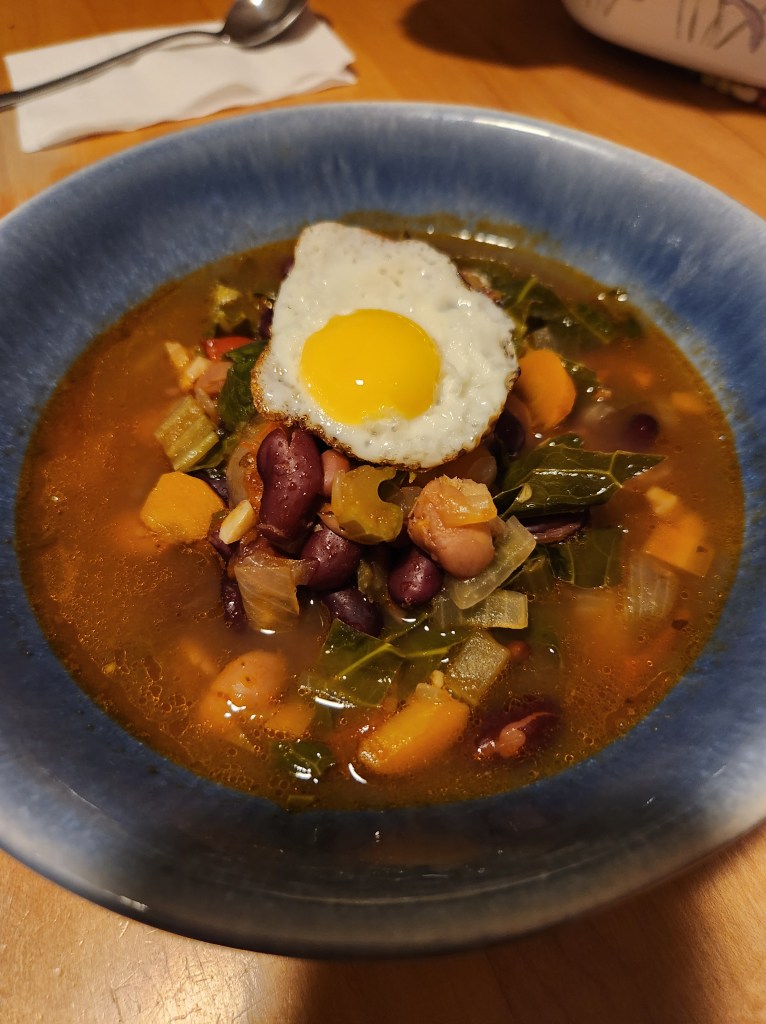 This is my 2.0 version because I made a post on this soup over the summer. However, this time I tried to make it even better. The process starts the day prior with soaking dried beans. I use organic dried kidney beans, dried Klass’ Beans from Blue Hill at Stone Barnes, and sea island red peas from Anson Mills. The dried beans are soaked overnight in water. After about 24 hours, I begin slow simmering the beans until almost cooked. In a pot, heat grapeseed oil and olive oil. Add the onion, then celery, then carrots, then garlic. Deglaze with a little white wine. Then add in chopped roma tomatoes and a can of fresh whole tomatoes. Pour in fresh vegetable stock and chicken stock. Add water as needed. Sprinkle in some oregano and a cheese rind. Add in beans, and some bean water. Simmer everything until the soup becomes slightly reduced down. Add in collard greens.