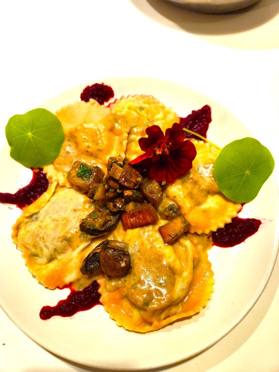 Beet Pasta Ravioli with Mushroom & Eggplant Filling